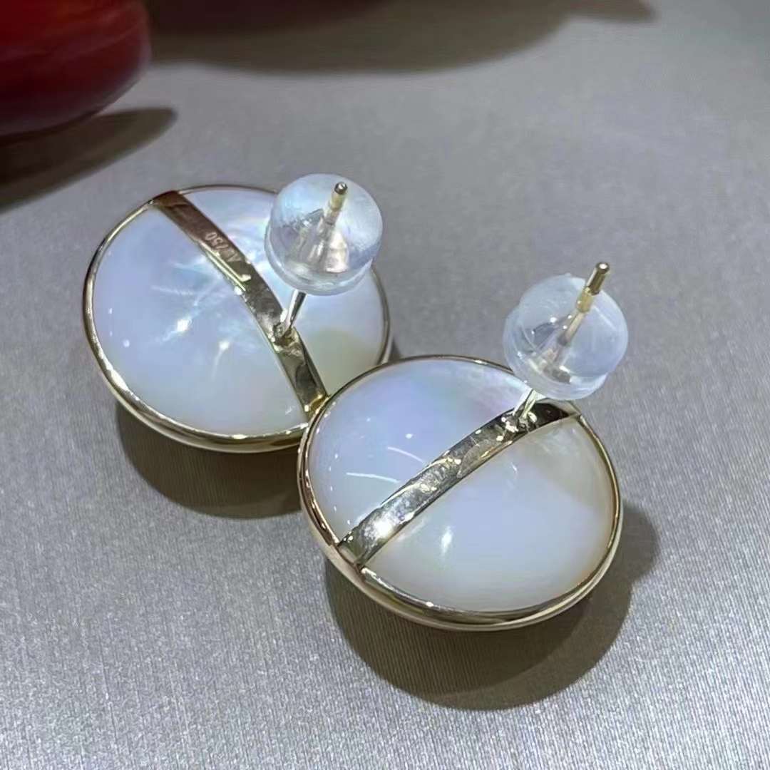 最最基础的马贝款耳钉 🇯🇵成品……9-10mm ,稀有小尺寸~表皮细腻光滑 轻微生长纹, 镜面光泽 ,18K金镶嵌, 精工加厚包边工艺