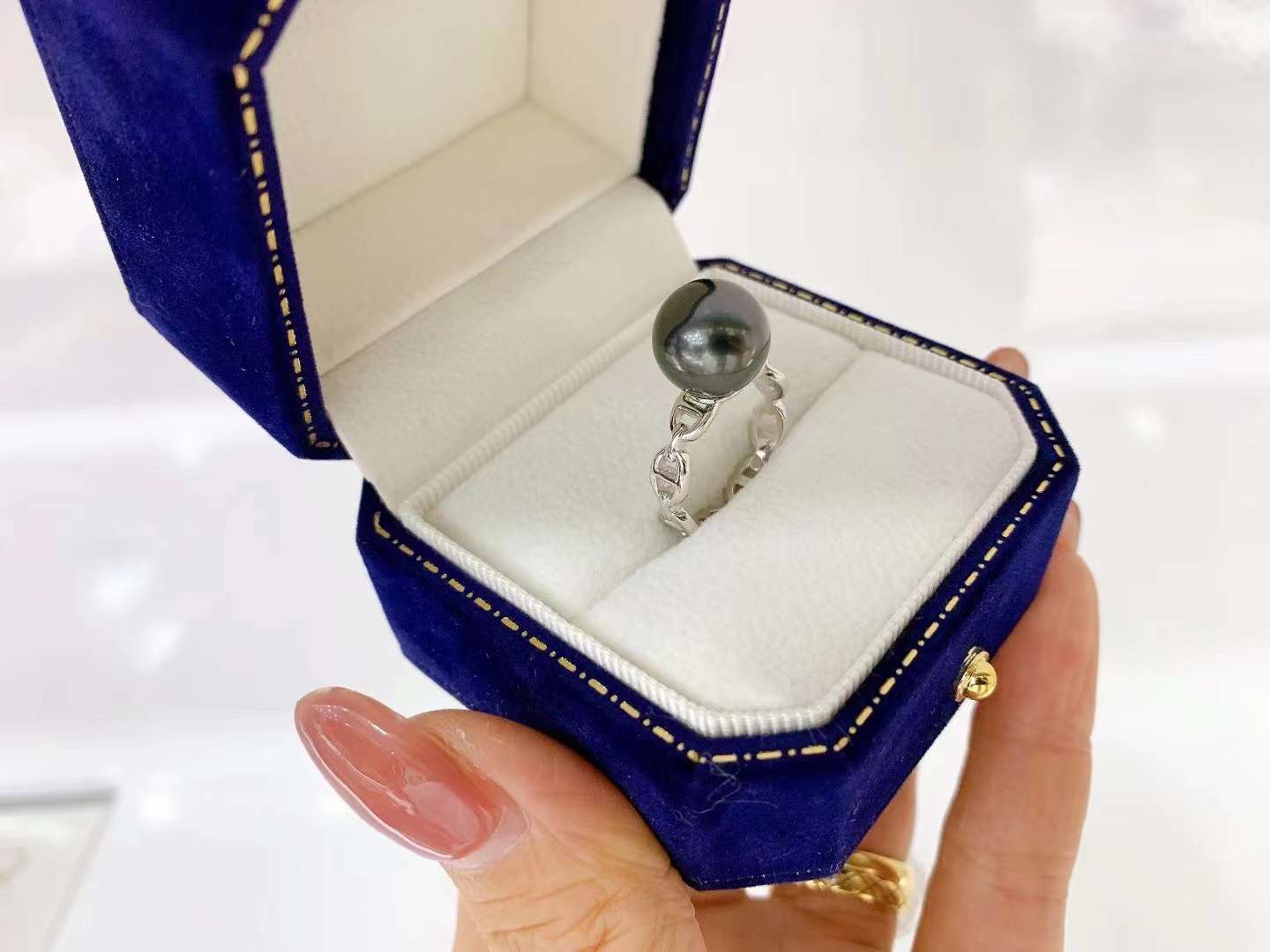 猪鼻子戒指~10-11毫米大溪地黑珍珠~💰998🉐