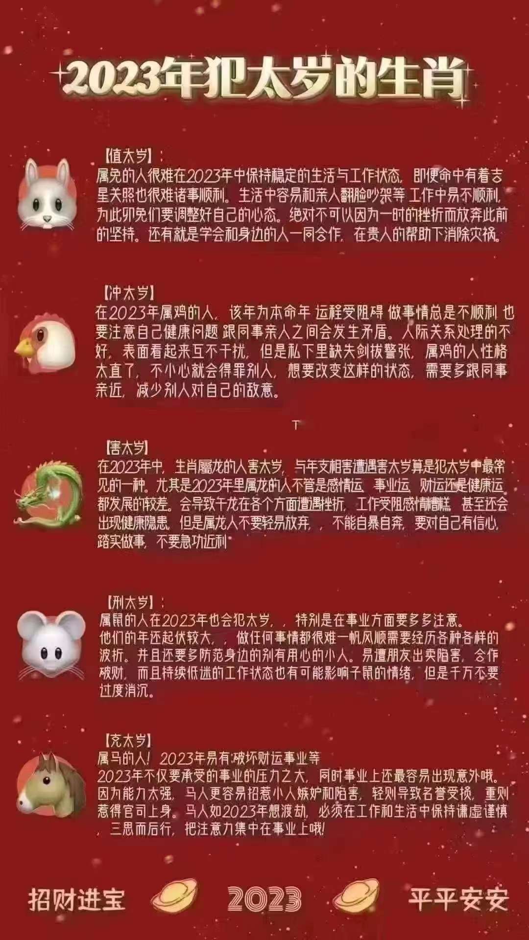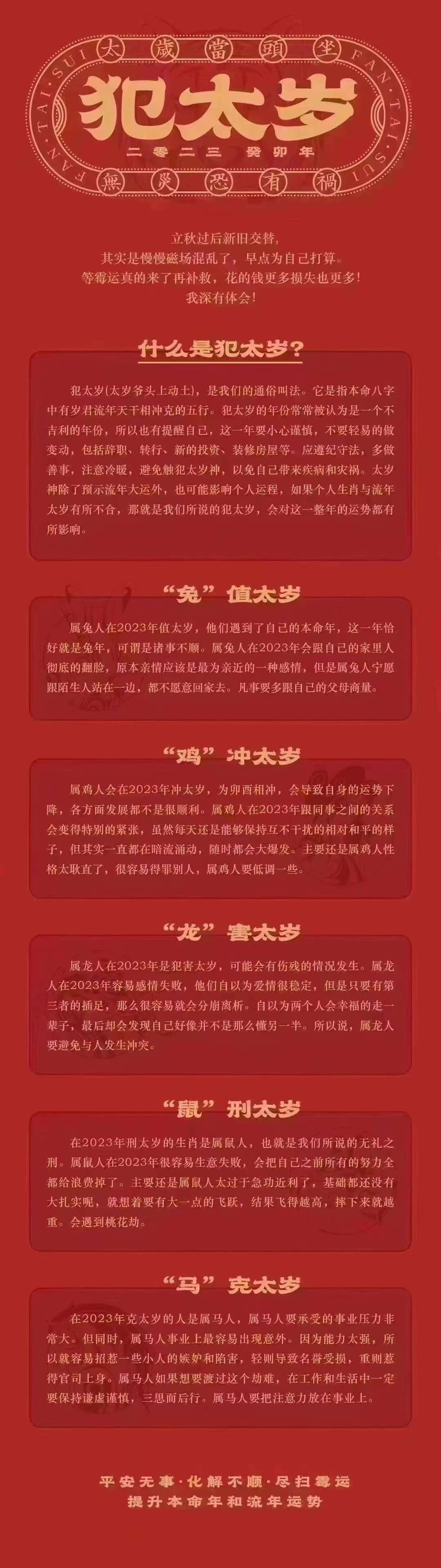 夫乃妻是一体,好的势运相叠加,坏也的是如此,夫妻方双有方一犯太的岁要时及化太岁,2023年犯岁太的兔、龙、鸡、鼠、马! 2022-12-08 17:13:03