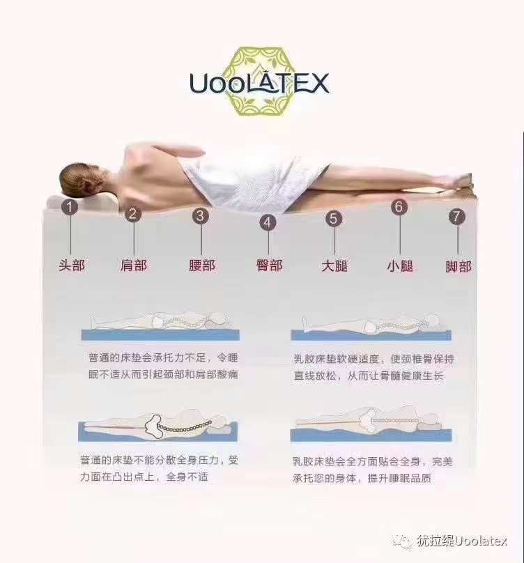 Uoolatex乳胶垫 根据人体不同重力分布,划分为七区,分别承托不同部位,贴合人体曲线~肩部、背部、腰部到大腿、小腿,全身都能「凹凸有致」的与床垫贴合,比做按摩都放松😌 2022-12-14 14:55:16