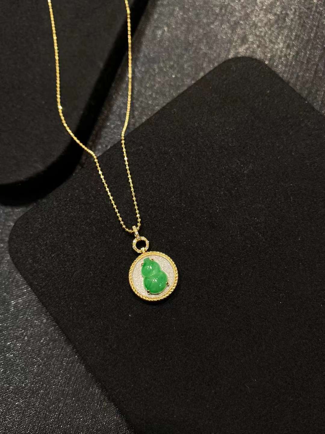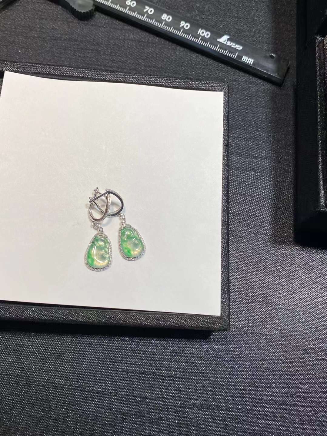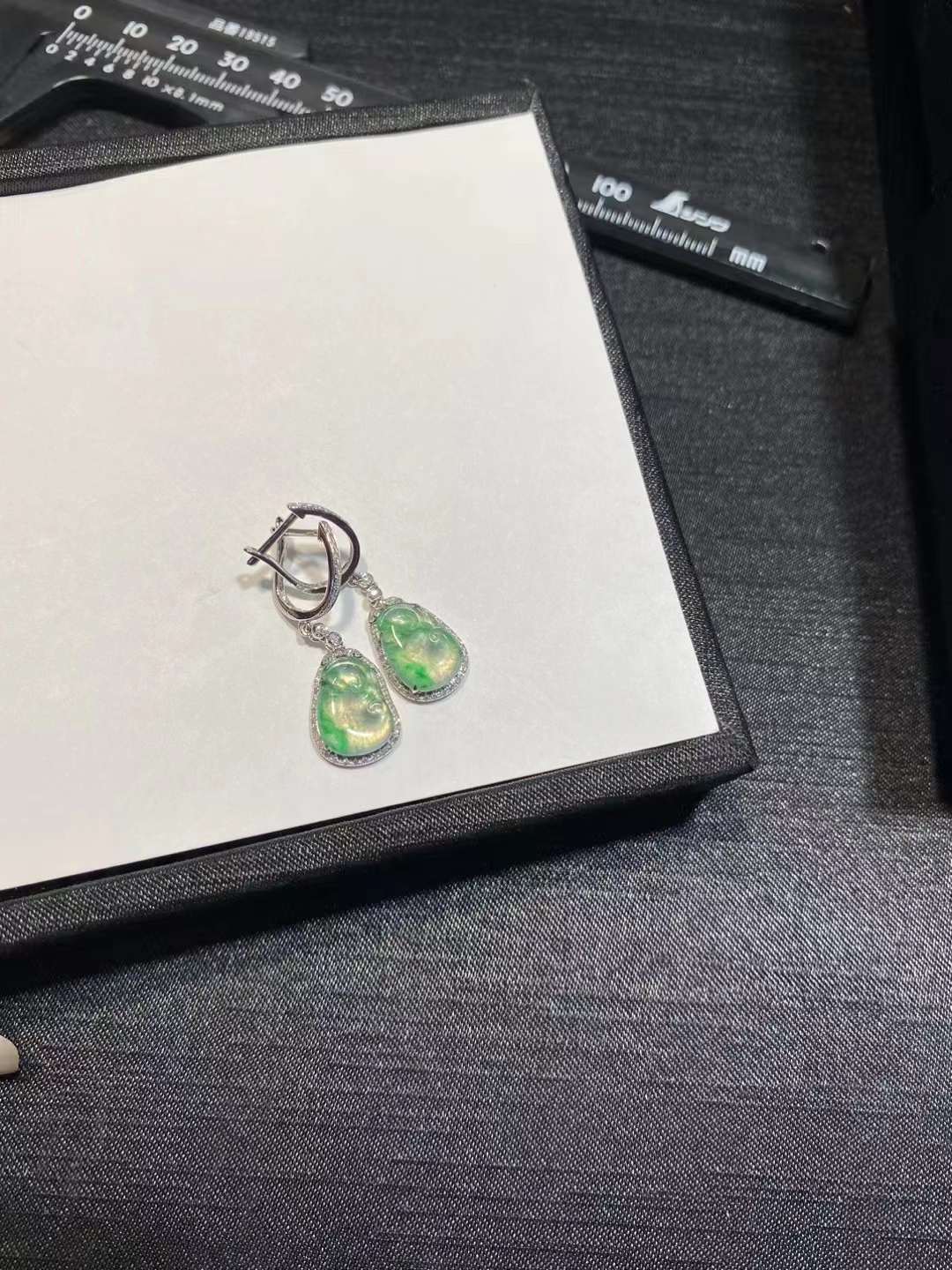 🌿 . 高冰金丝绿花 如意耳扣
