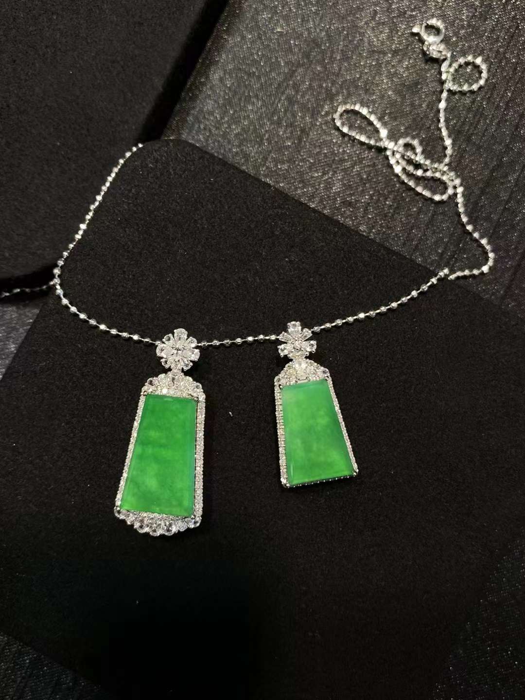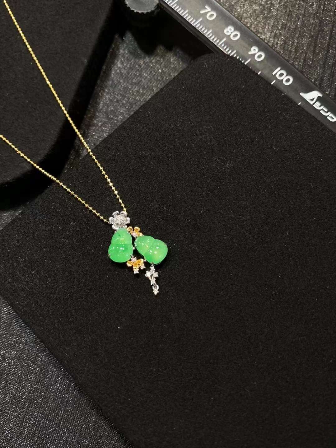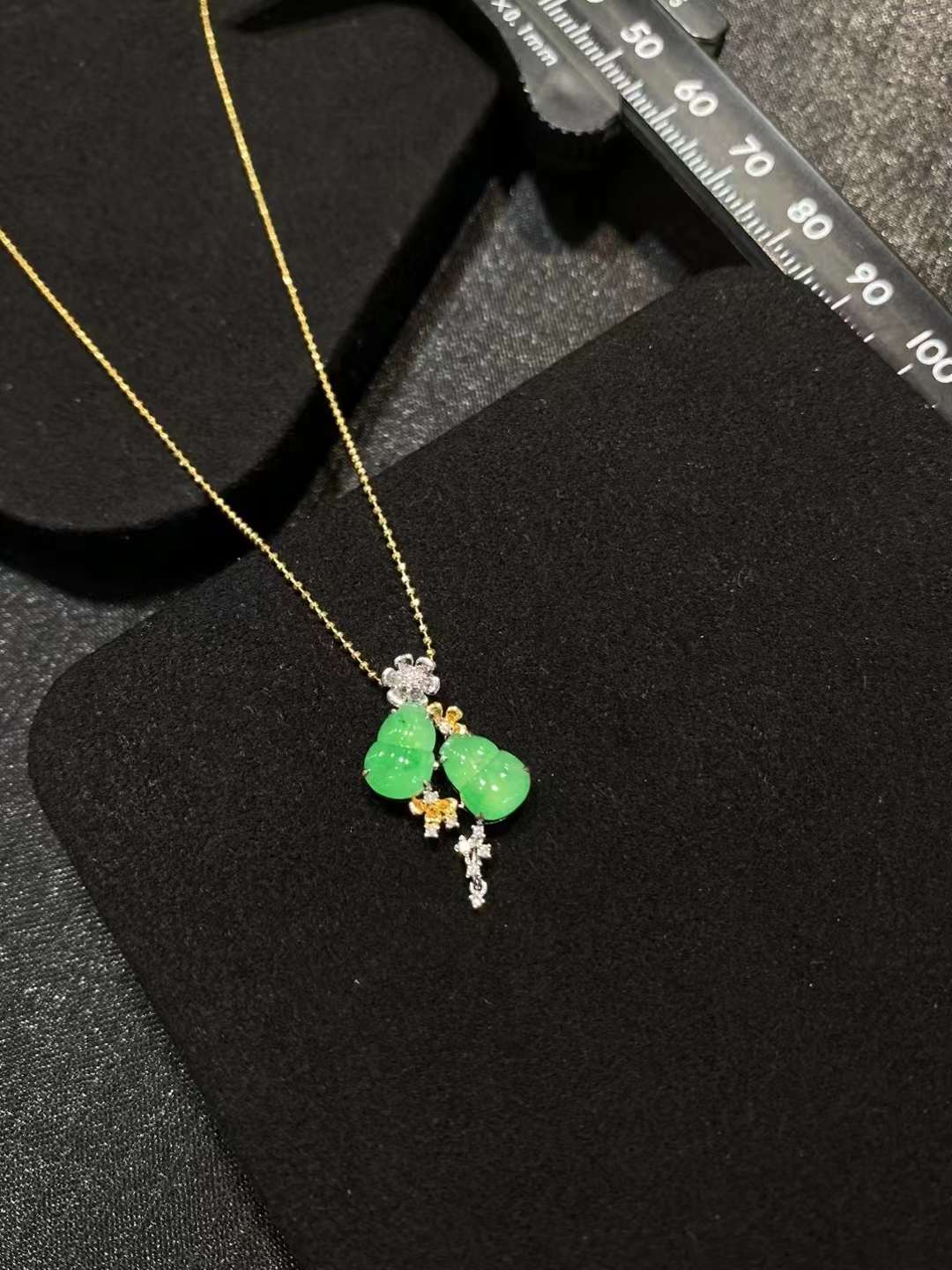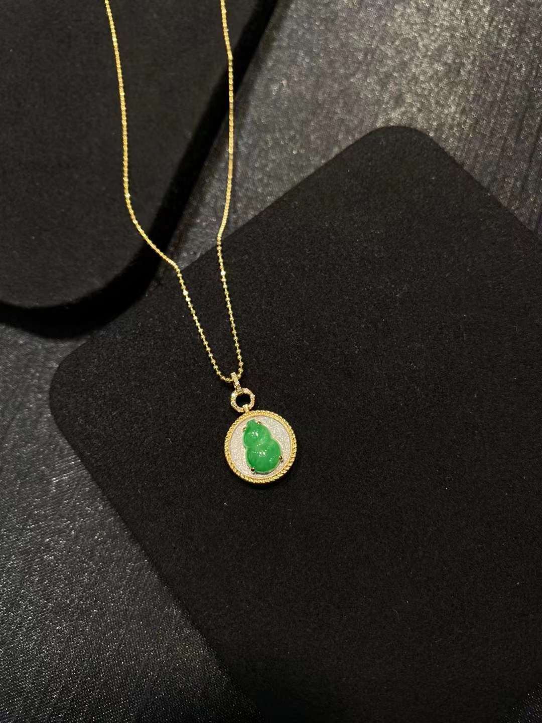 🌿 . 高冰金丝绿花 如意耳扣