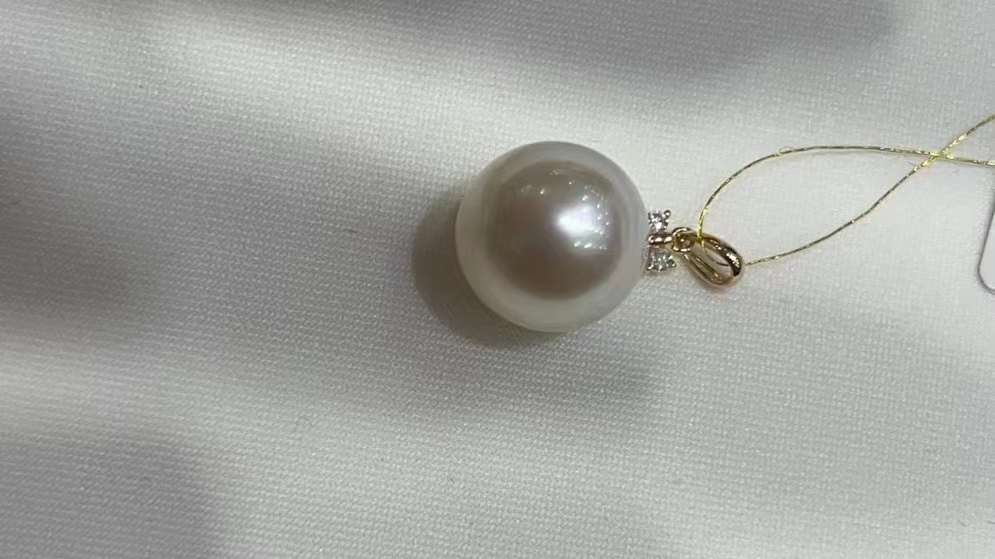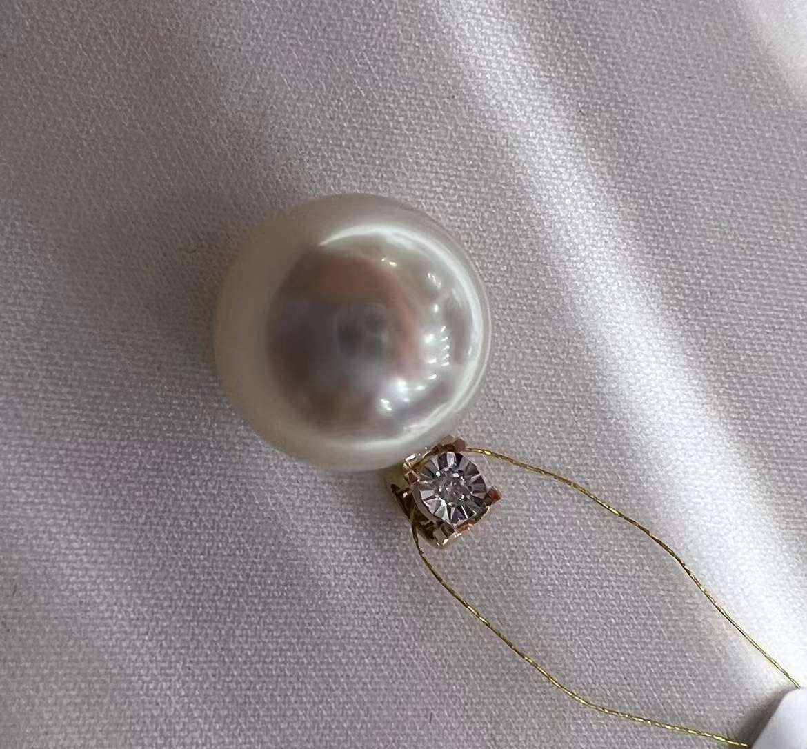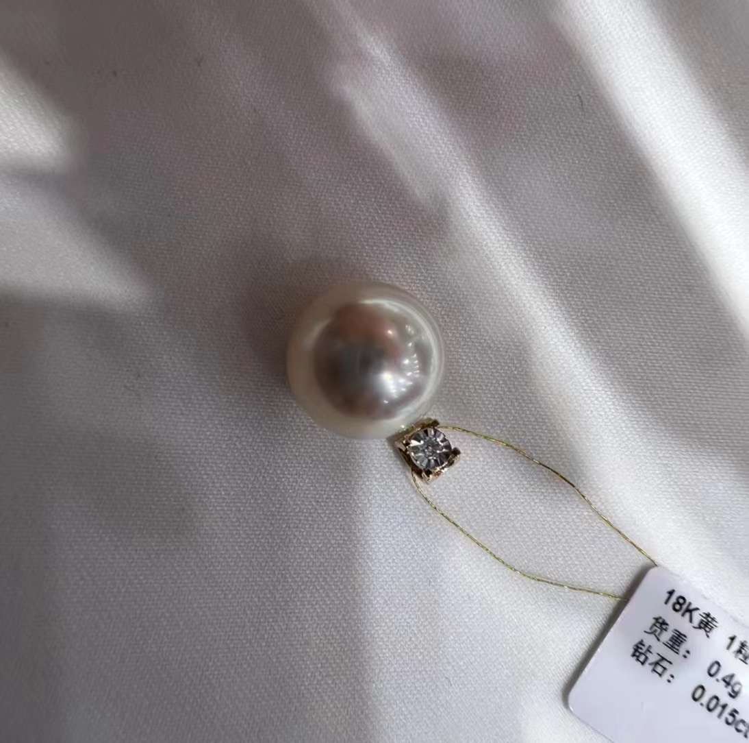 12.2毫米澳白,圆微瑕~正背面都干净无暇,瑕疵在底部侧面~完全不显~