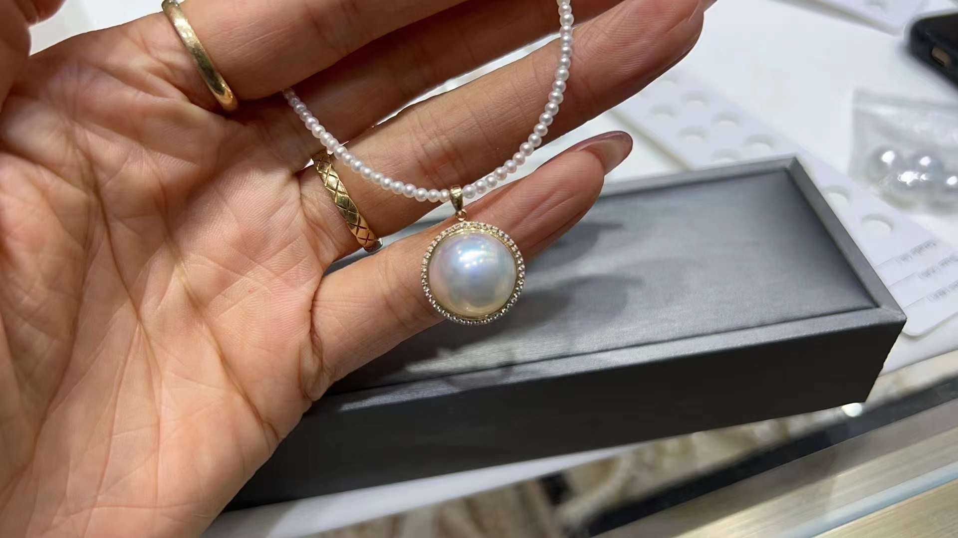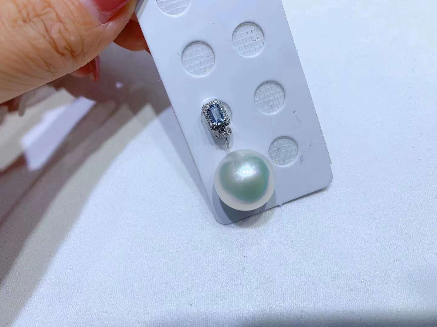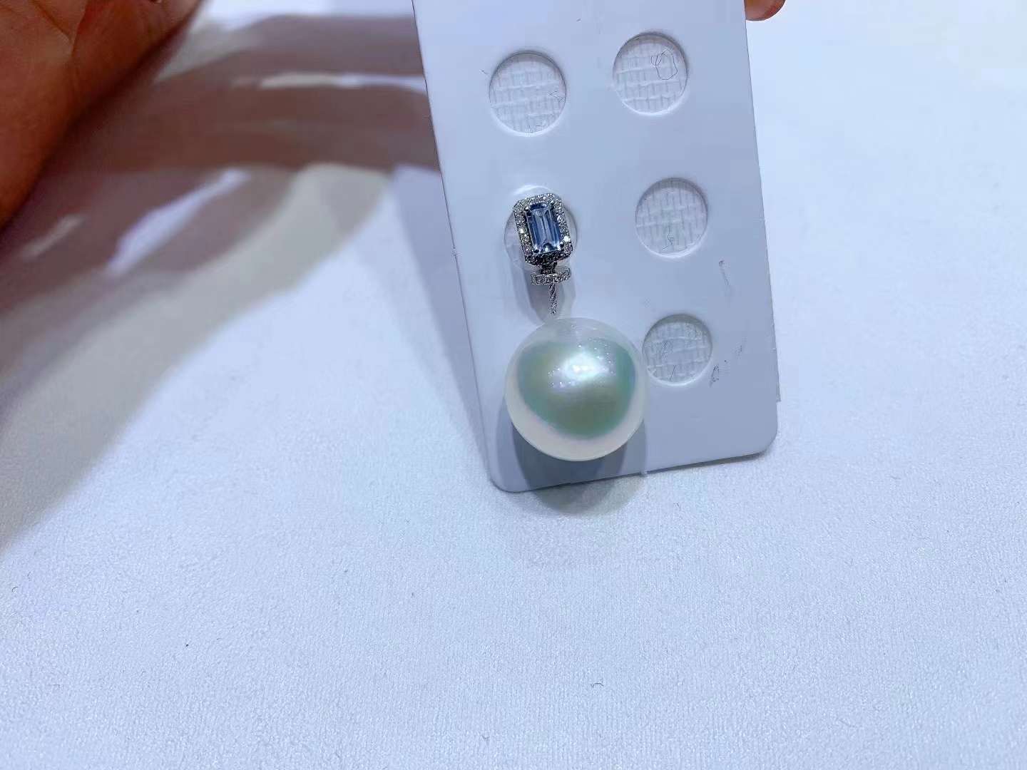 12.2毫米澳白,圆微瑕~正背面都干净无暇,瑕疵在底部侧面~完全不显~